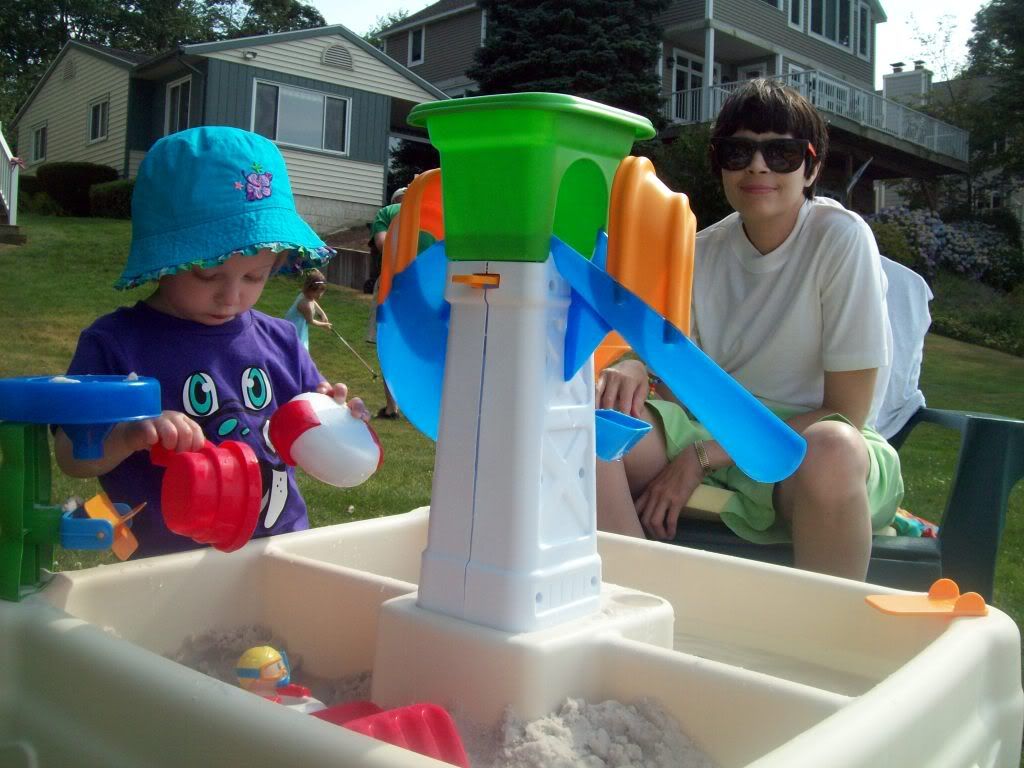 Bridget enjoyed the sand table and Aunt Beth enjoyed watching her.